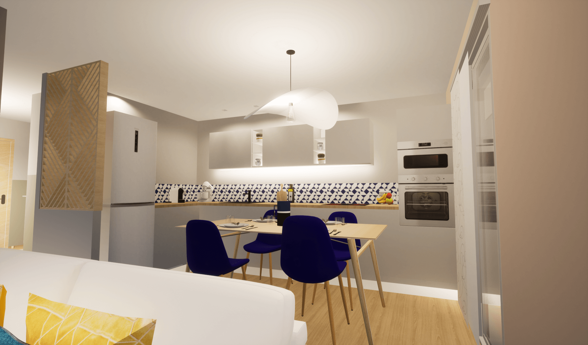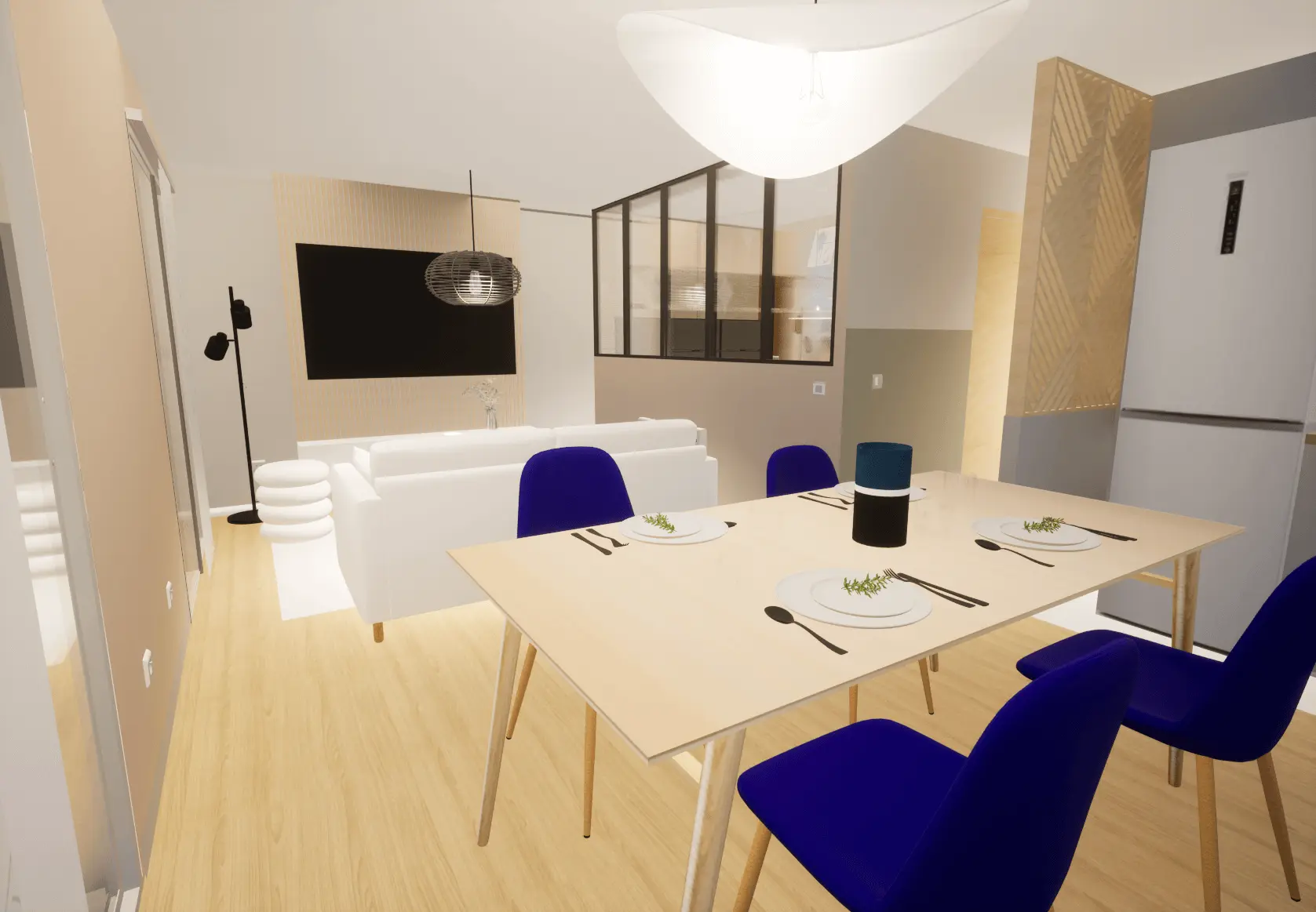 Aménager ce 3 pièces et le décorer avec un style scandinave, à l’esprit à la fois chaleureux, élégant, pratique, lumineux et respecteux de l’environnement.