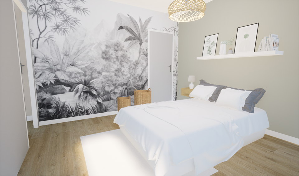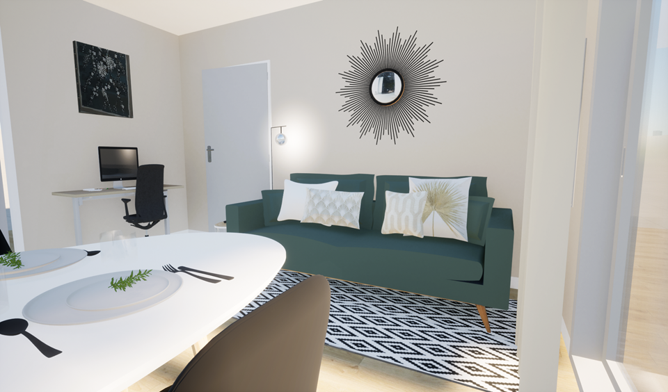 Décorer et aménager le salon et la chambre, désemcombrer les espaces, proposer des vrais espaces de rangements notamment dans la chambre et créer un cocon chaleureux.